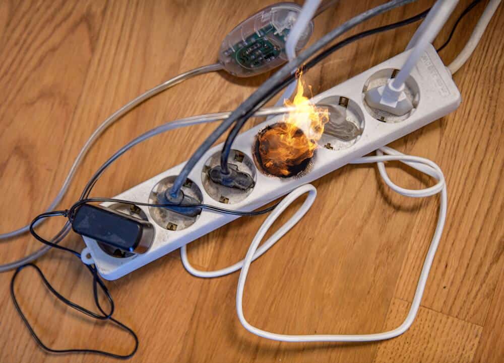 Gefährliches Schnäppchen: Wenn sich im Haushalt ein Brand entwickelt, wie hier an einer überlasteten Steckerleiste, wird ein mangelhafter Rauchmelder zur Lebensbedrohung. (Foto: Maurizio Gambarini/Rauchmelder retten Leben)