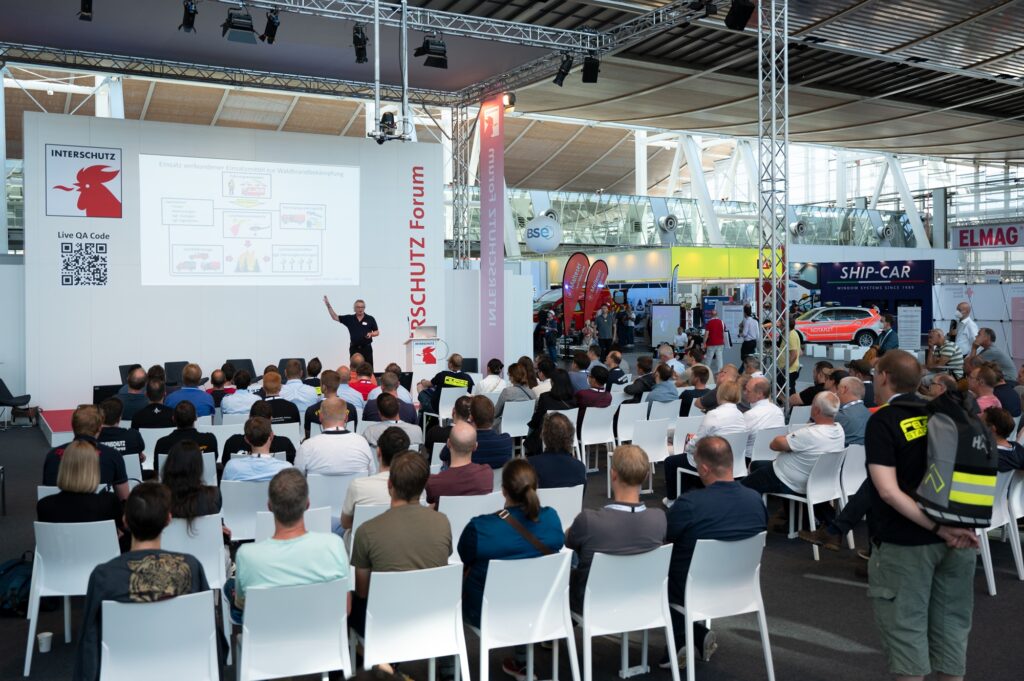Auch die Vorträge auf dem Interschutz Forum in Halle 17, der Bevölkerungsschutzhalle, tragen den Fokusthemen deutlich Rechnung und haben thematisch einen so klaren Praxisbezug wie nie zuvor: Auswirkungen des Klimawandels, Zeitenwende im Bevölkerungsschutz, Nachhaltigkeit, Künstliche Intelligenz in Leitstellen, Lagezentren und am Einsatzort.