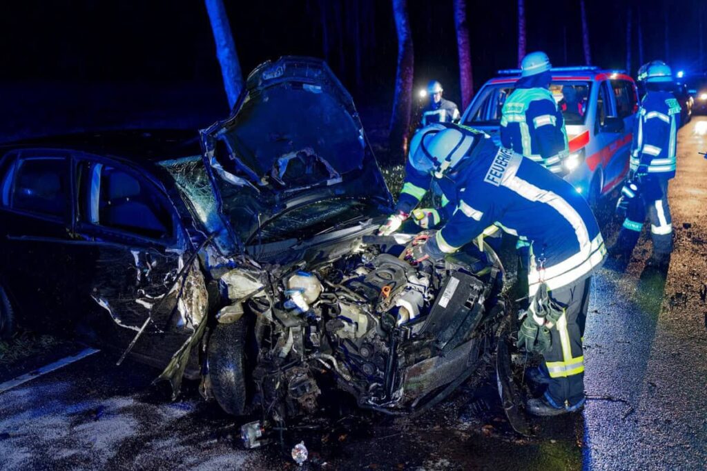Weitere Maßnahmen der Feuerwehr: Der Patient war bereits aus dem Fahrzeug befreit und wurde vom Rettungsdienst versorgt. Nach der Grobreinigung des Trümmerfeldes und dem Binden ausgelaufener Betriebsstoffe wurde die Einsatzstelle an die Polizei übergeben. (Foto: FF Bleckede)