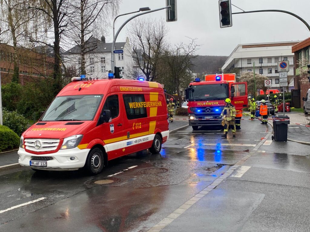 Der Löschzug der Berufsfeuerwehr Iserlohn wurde gemeinsam mit der Löschgruppe Stadtmitte am 25. März 2026 um 10.55 Uhr zu einem Brandereignis in einer 10-kV-Station in die Gerichtsstraße alarmiert. Beim Eintreffen bestätigte sich die Lage. Es brannte in einem Schalthaus der Stadtwerke an einer Sporthalle.