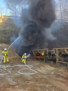 Zeitgleich löste die Brandmeldeanlage eines Industriebetriebes in der Iserlohnerheide aus. Durch den Stromausfall kam es zu Störungen im Betriebsablauf und anschließend zu einem Brand, bei dem im Einsatzverlauf die Löschgruppen Bremke, Letmathe, Sümmern, Drüpplingsen und Leckingsen eingesetzt wurden.