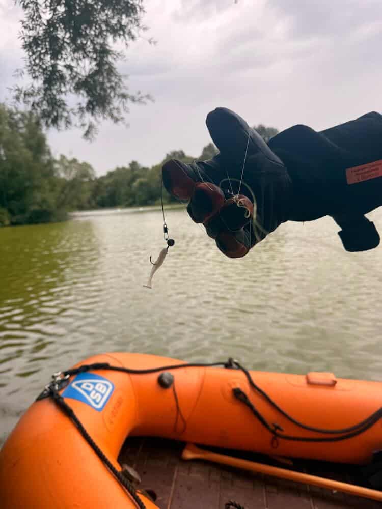 Unverzüglich machten sich Einsatzkräfte des Löschzugs Mitte mit dem Rüstwagen auf den Weg zum See. Am Einsatzort angekommen, fanden sie das Jungtier, das sie mit einem Schlauchboot erreichten, in einer bedrängten Lage: Hals, Körper und Beine des Vogels waren fast vollständig von der Angelschnur umwickelt. Sie schnitten das Küken vorsichtig frei und verbrachten es an das Ufer, wo sie anschließend alle Schnüre an seinem Körper entfernten.