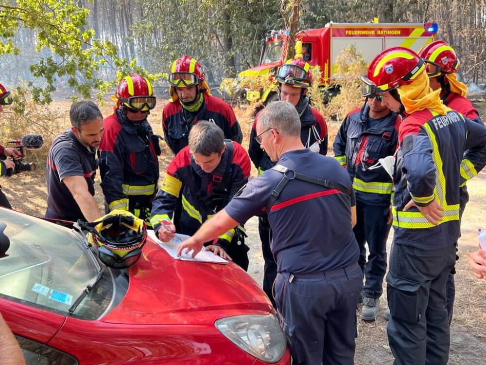 Insgesamt sind 65 Kräfte aus Bonn, Düsseldorf, Leverkusen, Königswinter, Ratingen sowie aus Niedersachsen und von der Hilfsorganisation @fire und der Johanniter-Unfallhilfe nach Frankreich gereist. Bei den hohen Außentemperaturen von 40 °C wird vermehrt darauf geachtet, dass die Einsatzkräfte genug trinken und Pause machen.